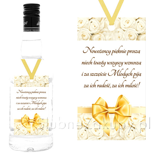 Bo nawet jeśli wy, państwo młodzi, jesteście niepijący, trudno odmówić go gościom. Żeby nie mieć żadnej alkoholowej obsuwy, dobrze jest zatroszczyć się o niego wcześniej, bo to wydatek niemały, a poza tym trzeba go przewieźć na miejsce i schłodzić go przed podaniem. Niektórzy decydują się również na fikuśne karteczki np. z wierszykami, które przyczepiają do szyjek trunków. To bardzo ciekawy pomysł, ale również w tym wypadku trzeba pomyśleć o tym dużo wcześniej – bo na takich ozdobach nie może być napisane byle co, a poza tym ich wykonanie to również dodatkowy koszt.