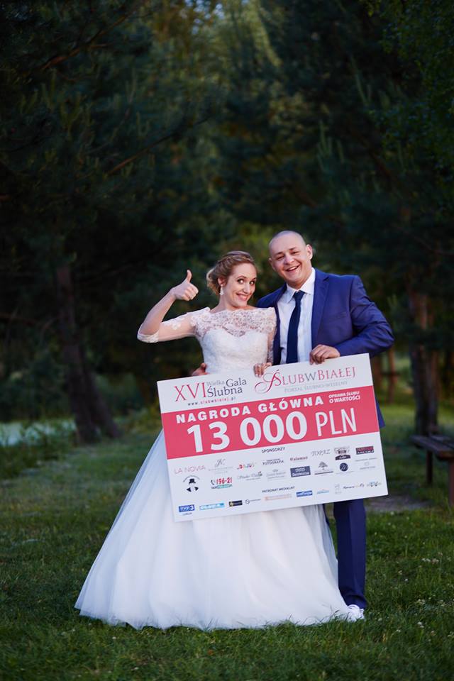 Życzyłabym sobie uszczęśliwiać więcej tak cudownych par jak Małgosia i Łukasz. Za swoje hasło brzmiące „Gdy o ślub się para stara, to niezbędna ślubna gala” zdobyli nagrodę główną czyli oprawę ślubu opiewającą na kwotę 13 tysięcy złotych podczas XVI Wielkiej Gali Ślubnej w naszym mieście.