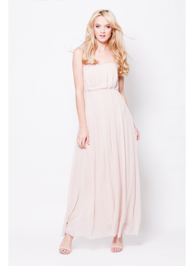 - Pudrowa sukienka maksi, gorsetowa, Monashe