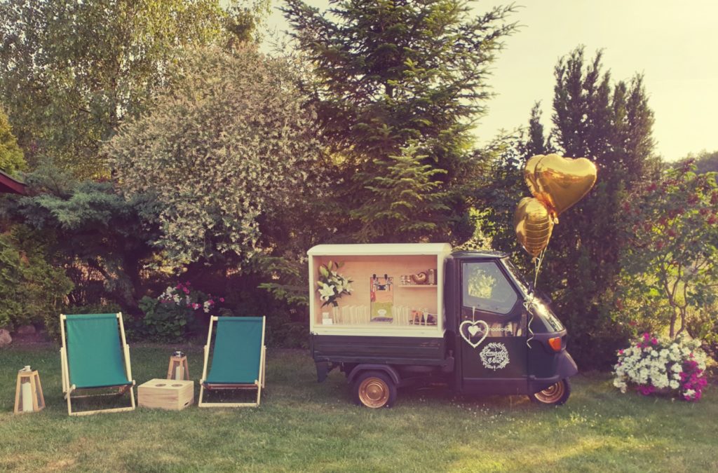 Dołączona strefa relaksu w zestawie z trójkołowcem, nie tylko zauroczy gości i pozytywnie ich zaskoczy, ale stworzy też miejsce do spotkań i chwili rozmowy w anturażu romantycznej atmosfery. Piaggio utrzymane jest we włoskim klimacie, ale na życzenie dekoracje można dostosować do innej wizji przyjęcia. Serwujemy wina musujące typu prosecco, wina białe, czerwone, piwo, cydr, drinki na bazie pro secco.