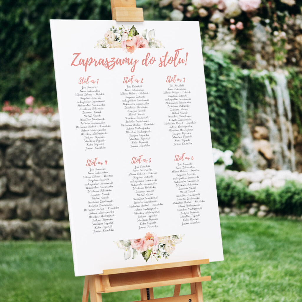- plakaty weselne w ramkach (np. Instrukcja instax, menu drinków, plan wesela itp.)