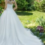10. Ilusion bodice – bardzo mocny trend. Zabudowane koronką plecy, dekolty, ramiona, długie rękawy z transparentnej tkaniny z wyhaftowanymi lub naszytymi ozdobami.