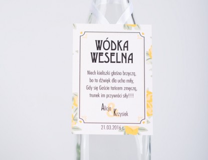 Zawieszki na alkohol to nie tylko ciekawa oprawa wesela, ale także miły gest dla gości. Oryginalne teksty czy ciekawe wzory sprawią, że goście będą zachwyceni. Jest to szczególnie ważne, gdy wódka staje się również prezentem na pożegnanie gości. Wówczas sama zawieszka będzie pamiątką. Tego typu papeteria ślubna sprawdza się lepiej niż naklejki na butelki, ponieważ możemy kupić ich mniejszą ilość i przewieszać, gdy wódka się skończy. Weźmy jednak pod uwagę, że zawieszki mogą zamoknąć lub po prostu któryś z gości weźmie je sobie na pamiątkę, więc większą ilość na zapas.